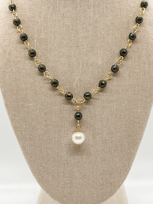 Pyrite pearl drop necklace