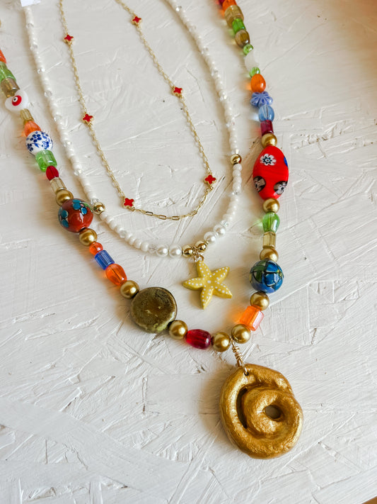 Red ceramic & flower necklace