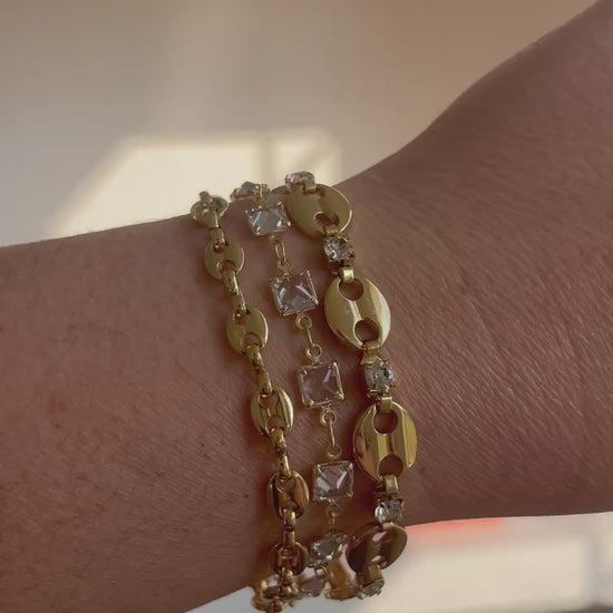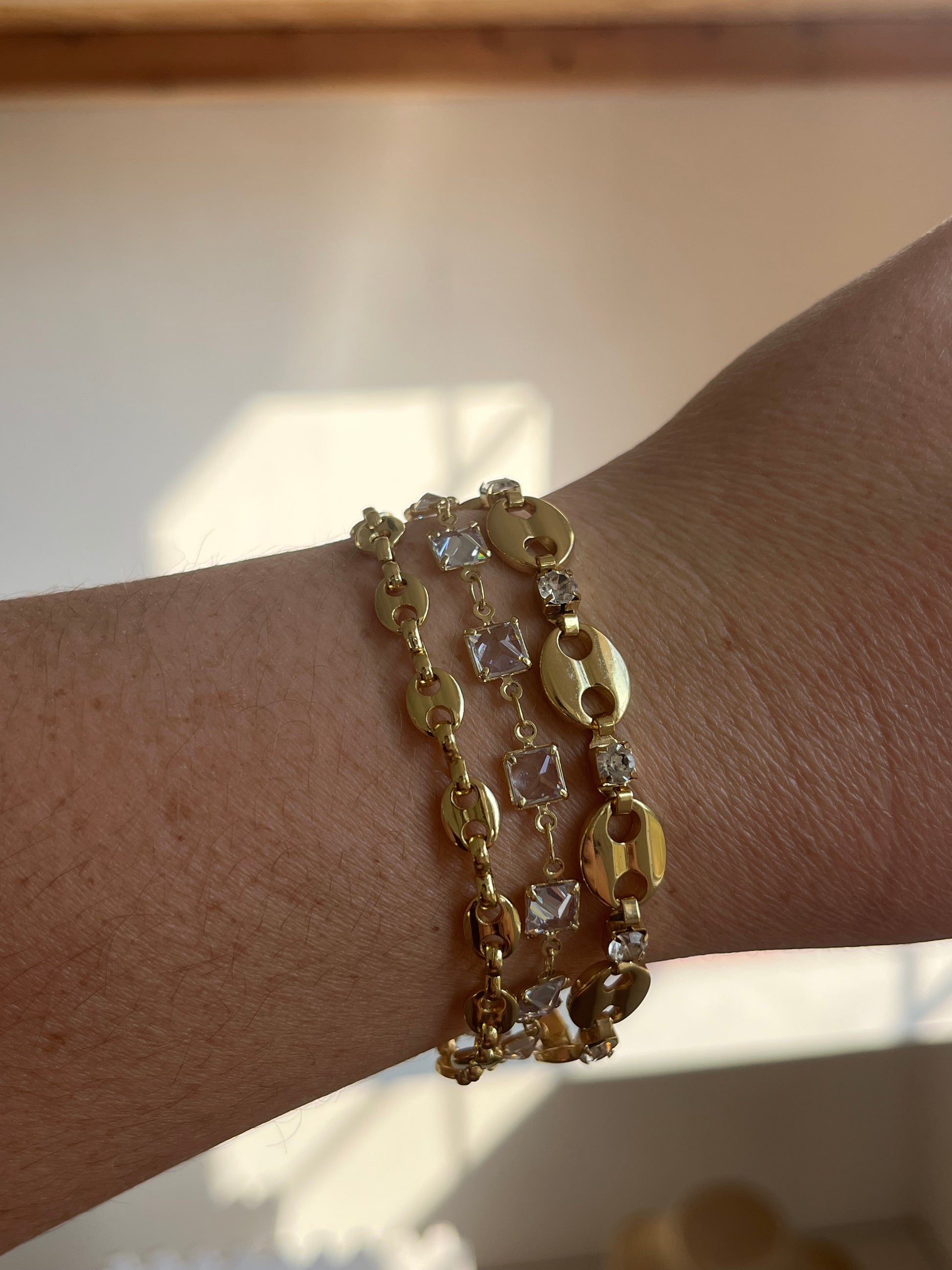 This set consists of 3 gold filled bracelets. All of them are 7” long with a 1” extender chain (pictured without the extender) Can be worn together or separately!